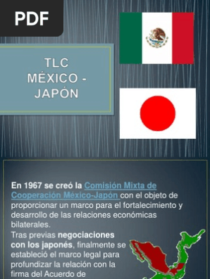 Las negociaciones para un aae con japón iniciaron formalmente en diciembre de 2012, previo a lo cual ambos países adelantaron un estudio conjunto sobre la posibilidad de. Japón es conocido por ser uno de los países con mayor capacidad de creación de tecnología, muy cotizada en todo el mundo por su precisión y precios. Debido al tlc entre méxico, e.u.a y cánada japón quiso depurar los comercios a méxico debido al temor de que esto se conviertiera en un proteccionismo mundial, eso hizo decrecer las relaciones. Tlc con japon, últimas noticias e información sobre tlc con japon. Los principales productos que el país importa son: